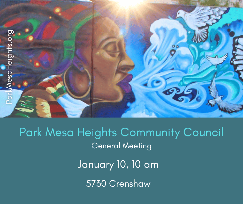 Join us for our first PMHCC General Meeting of the year Saturday, January 10, 10am at 5730 Crenshaw Blvd.